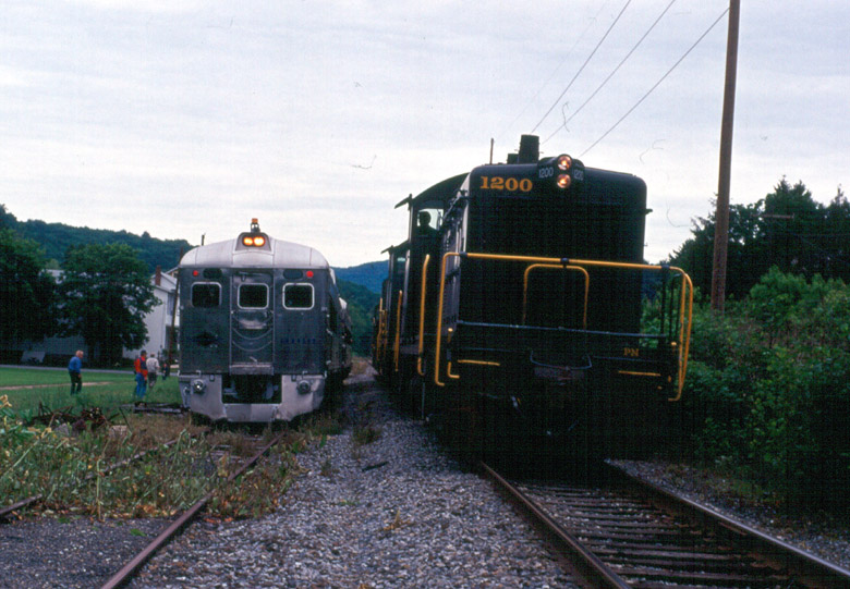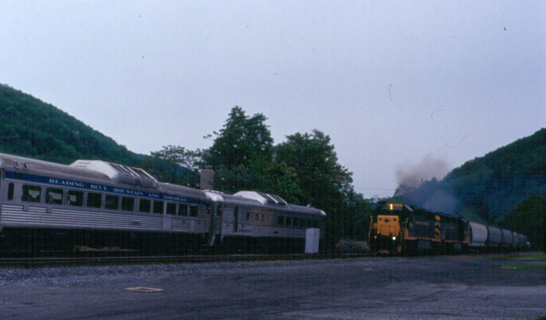 The Shenandoah Ramble, featuring RDC equipment, departed Port Clinton a shade after 9:00 AM. As with other JCRHS excursions, the train featured numerous photo stops and runbys. The first was held at New Ringgold, where the train met the Jim Thorpe-Port Clinton light engine move.